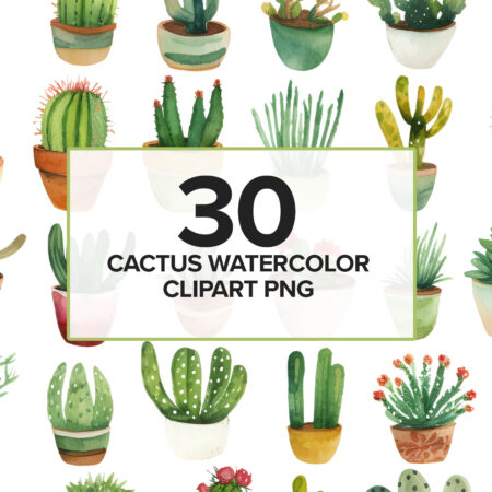 30 CACTUS WATERCOLOR CLIPART PNG Bundle