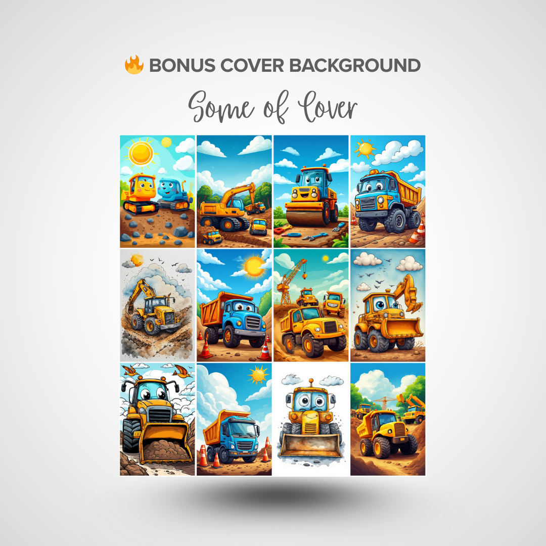 Theme: Construction Trucks, Heavy Equipment, Industrial Vehicles (in a cute, friendly style).