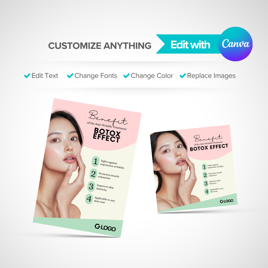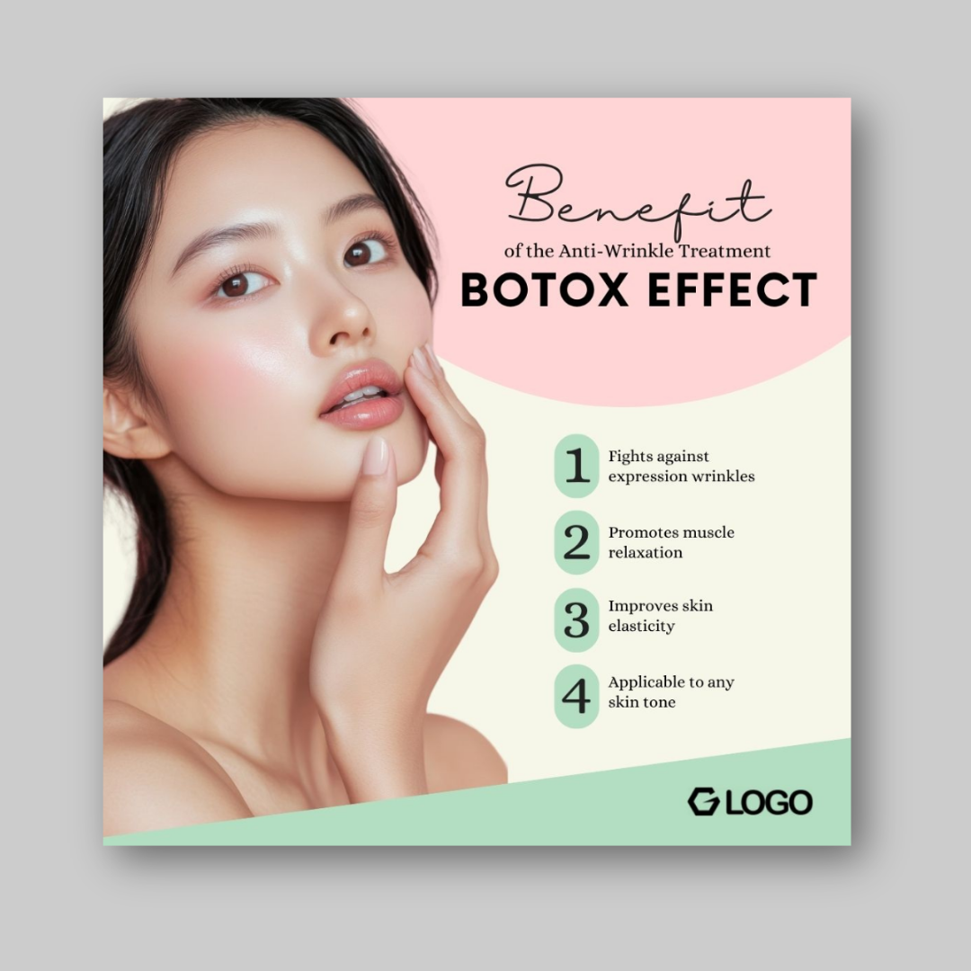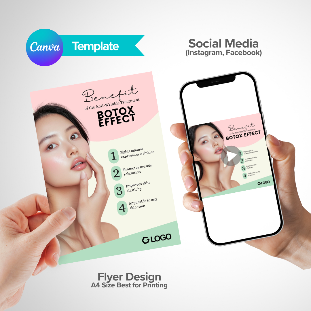 Promote your beauty clinic or aesthetic service with this stylish and feminine Canva template. Ideal for Botox, facial, and skincare treatment promotions.