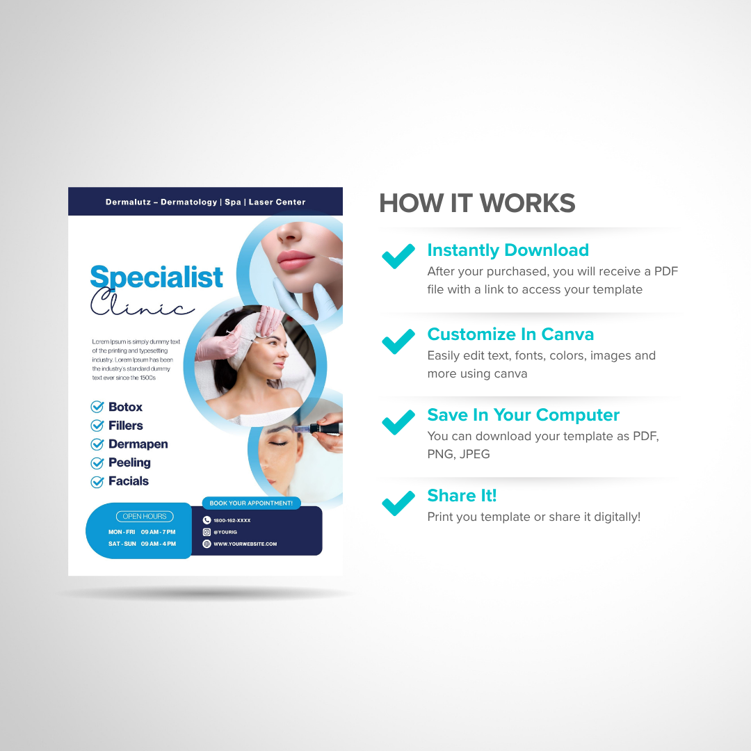botox flyer, beauty clinic template, medspa marketing, dermatology flyer, canva editable design, aesthetic promotion, filler social media post, skin treatment flyer, laser clinic canva template, beauty clinic poster, cosmetic clinic design, canva medical flyer, spa advertising template