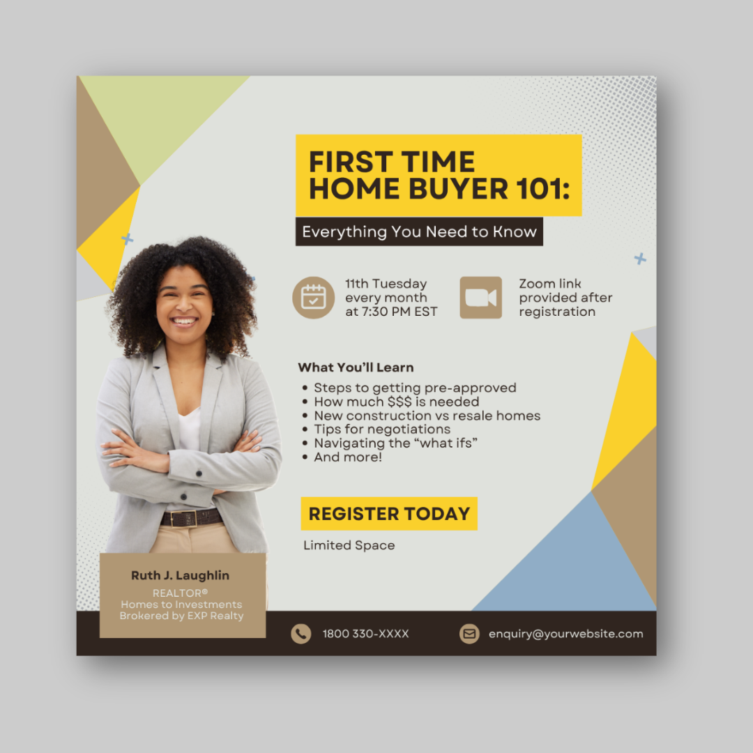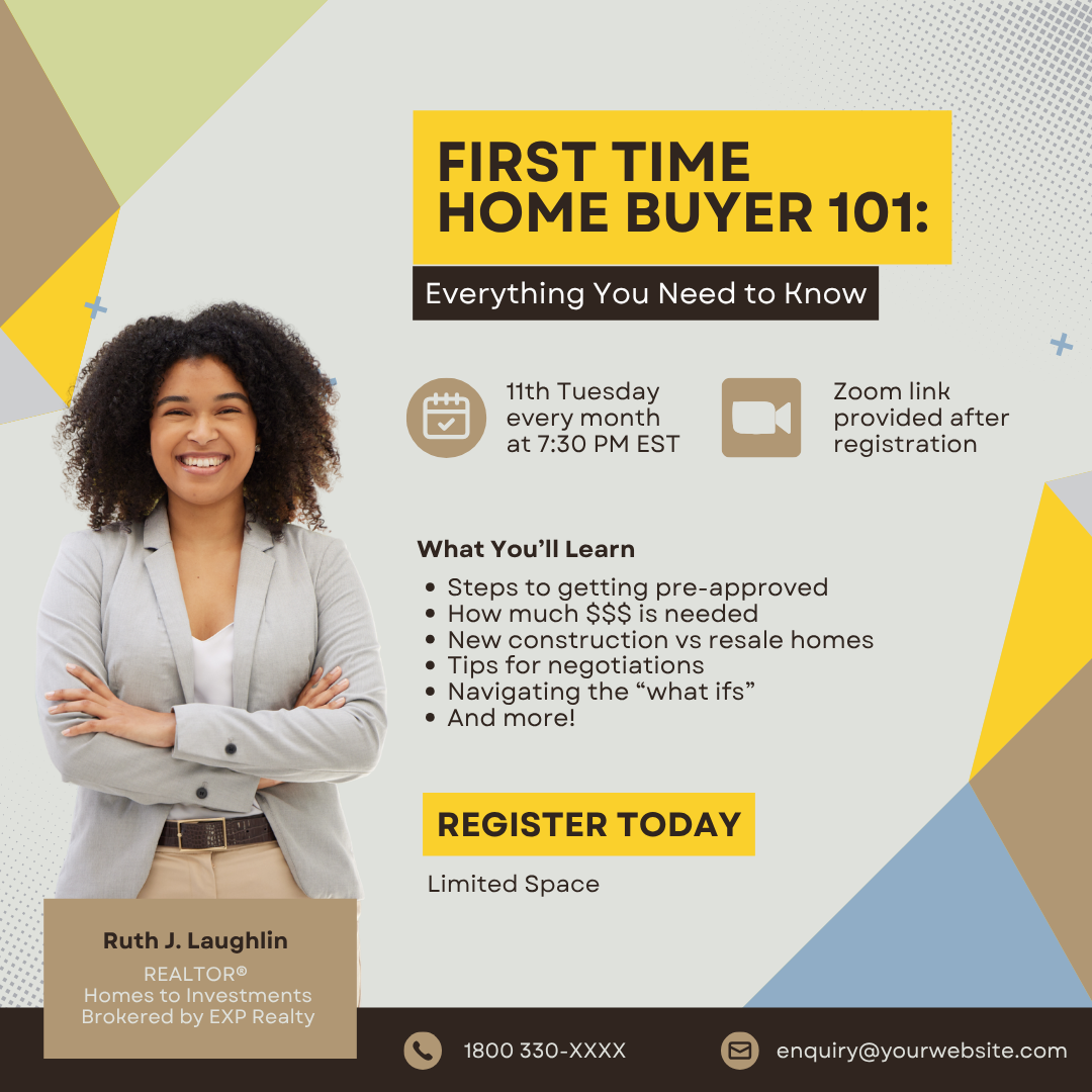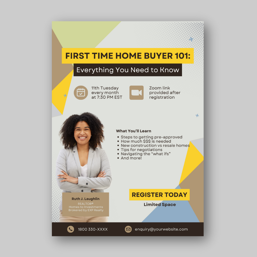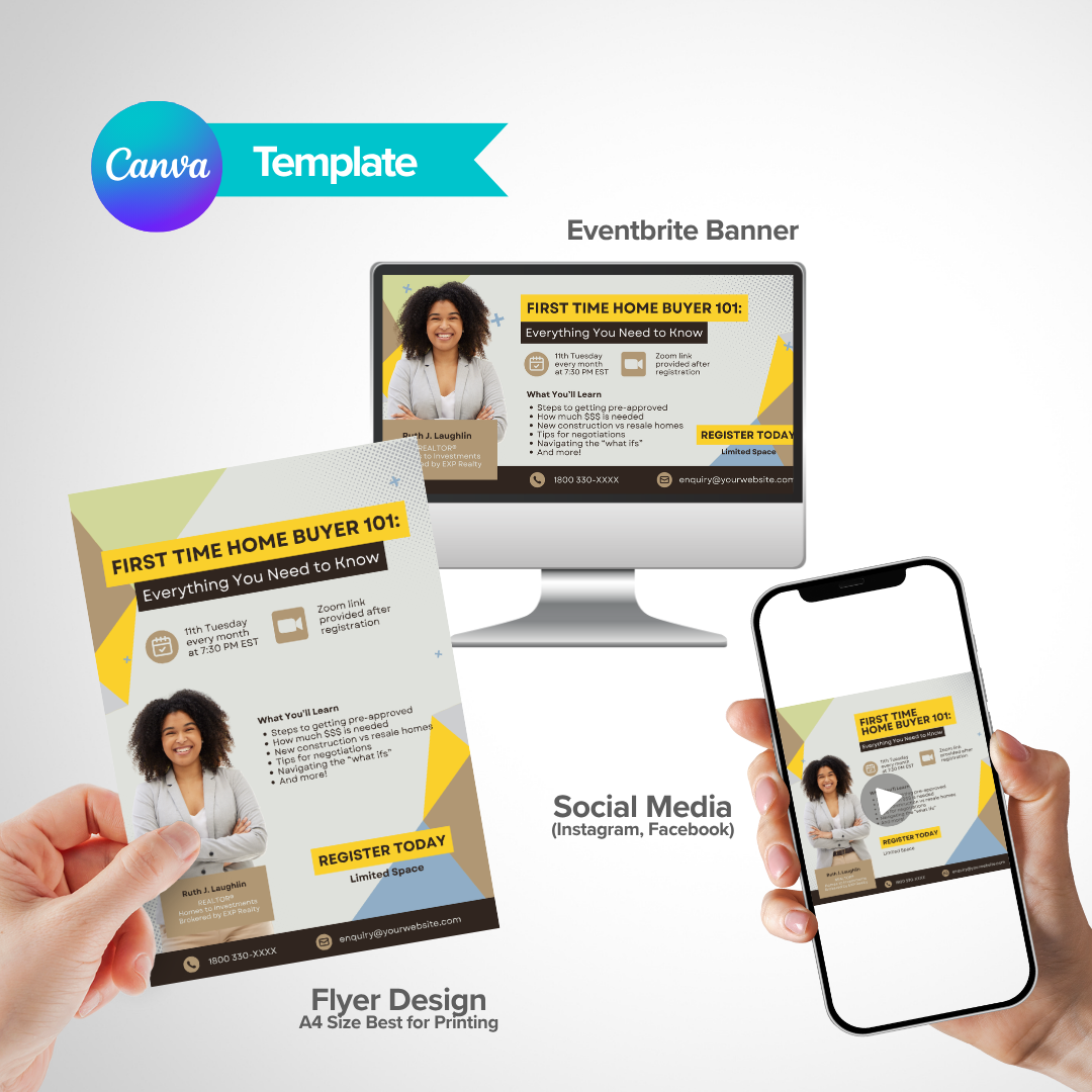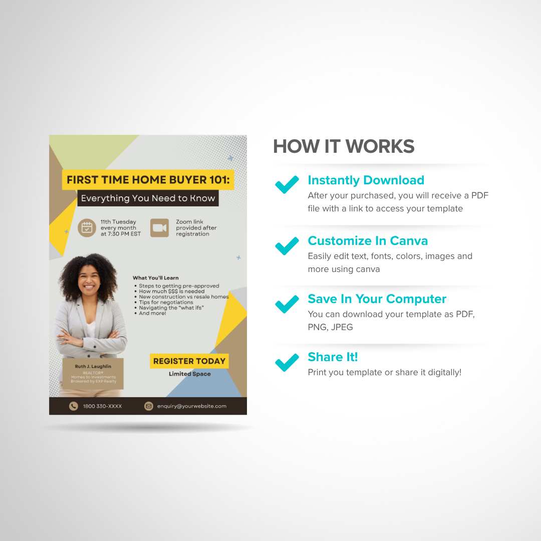 First Time Home Buyer 101 Flyer Template / Real Estate Seminar Canva Template