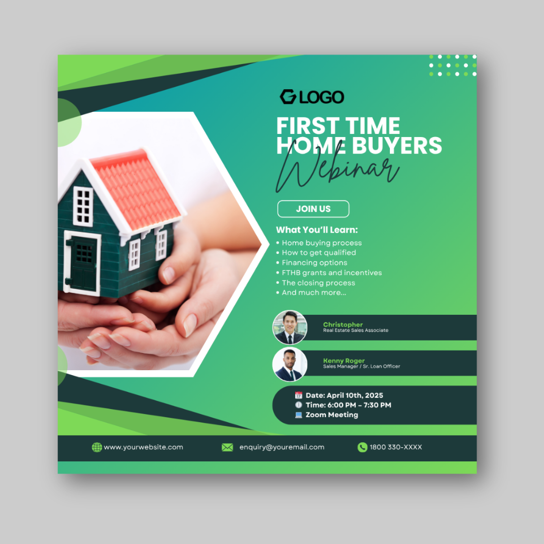 homebuyer webinar, real estate flyer, mortgage education event, property investment seminar, realtor canva design, real estate marketing banner, housing webinar flyer, homeownership awareness, first time buyer poster, realtor online event, canva real estate pack, real estate social banner, real estate event flyer