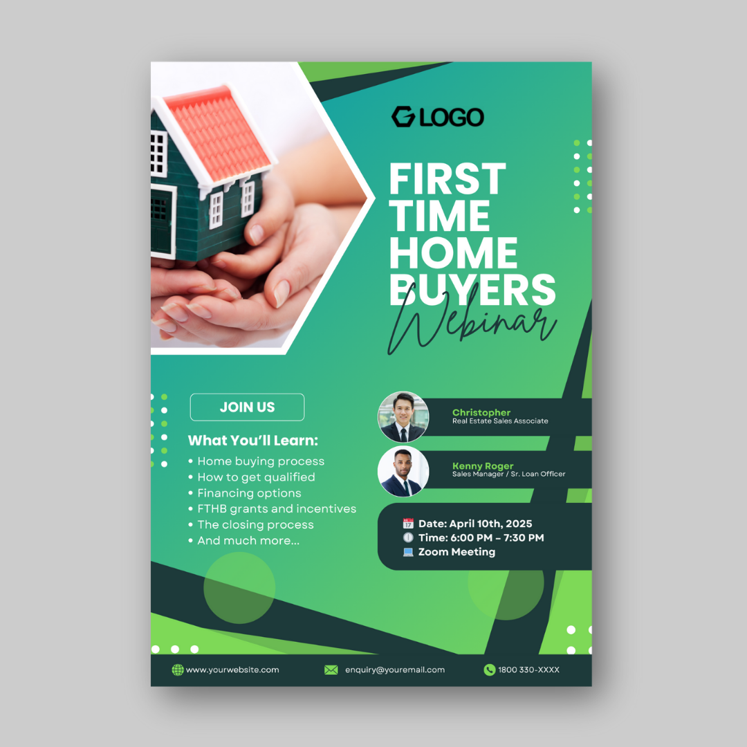 First Time Home Buyers Webinar Flyer Template / Real Estate Workshop Canva Template