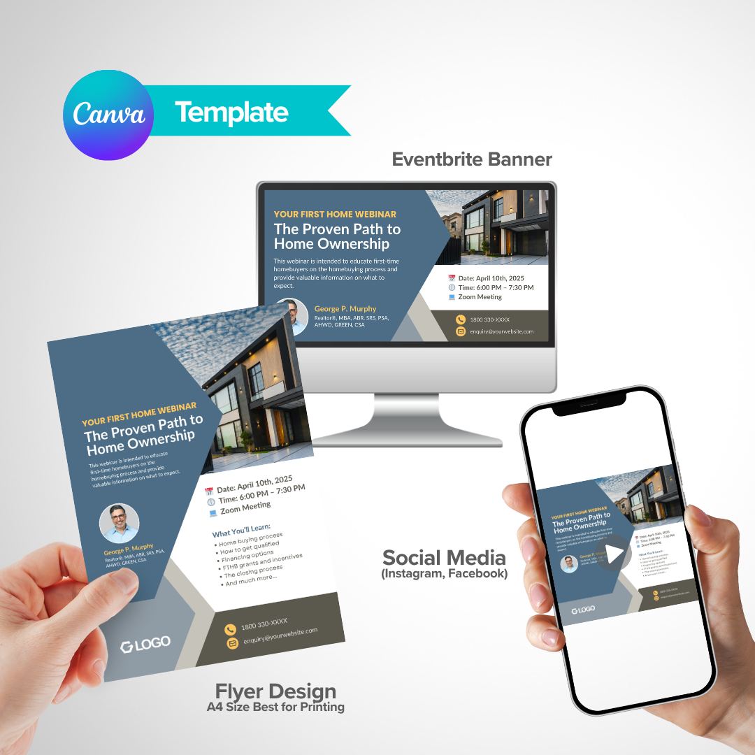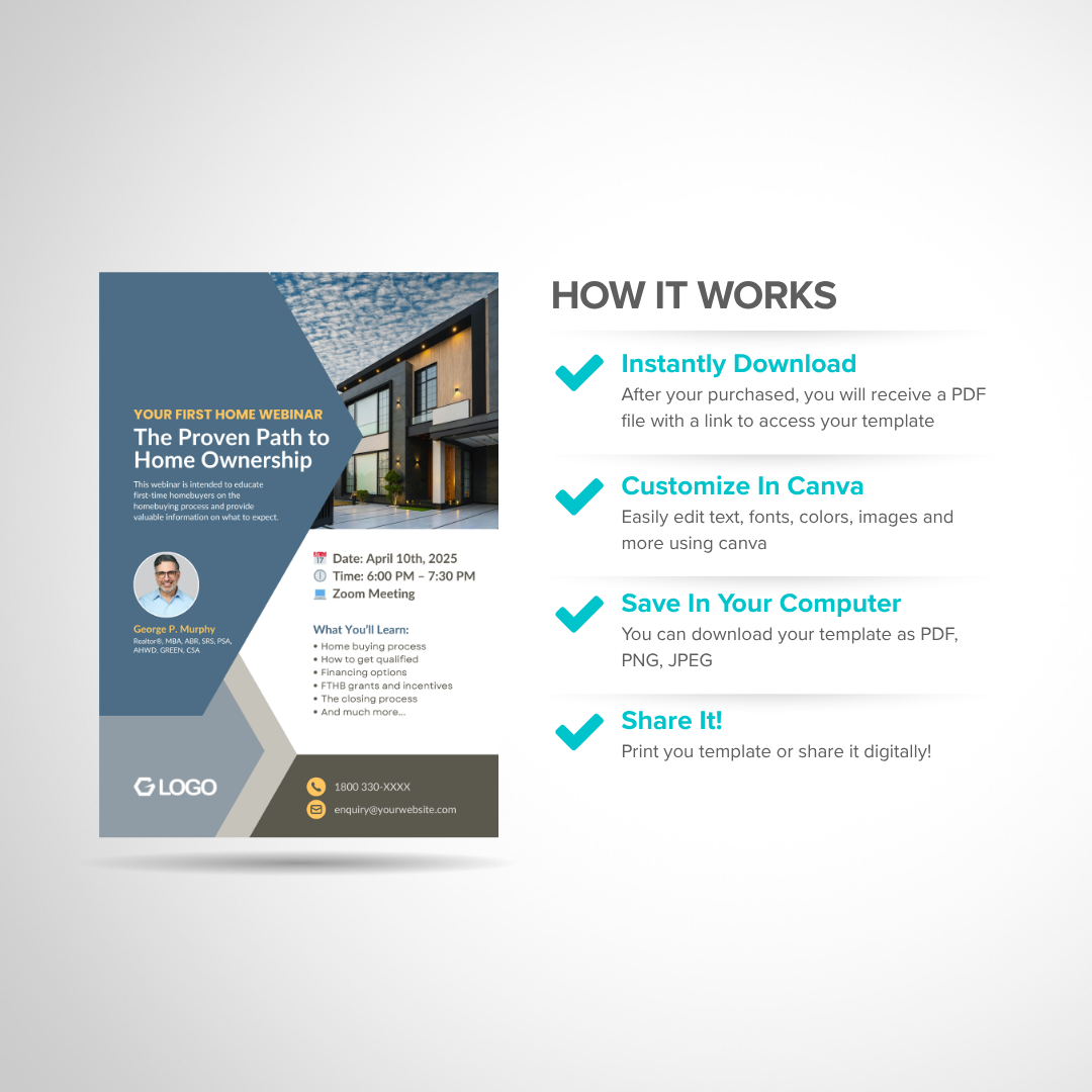 Home Ownership Webinar Flyer Template / Real Estate Canva Template