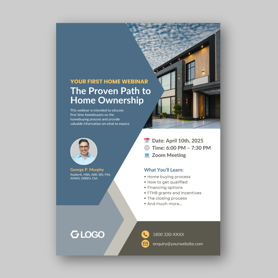 real estate flyer, homebuyer education, property seminar, realtor canva template, home ownership design, mortgage advisor event, first time homebuyer webinar, property investment flyer, real estate marketing banner, homebuyer awareness, canva real estate design, realtor flyer pack, real estate event template