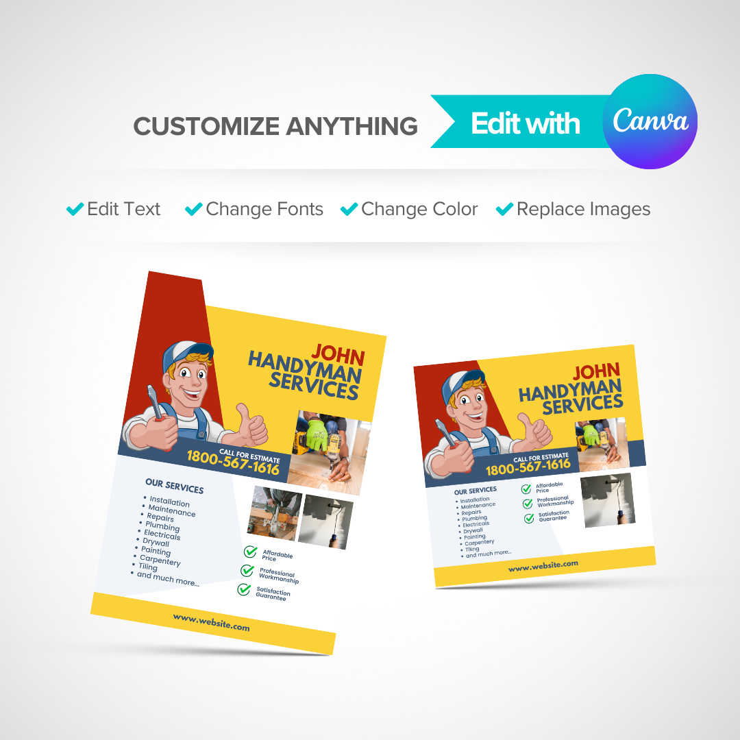 This Home Repair & Renovation Flyer Template is perfect for promoting your handyman, plumbing, electrical, carpentry, or painting services. Designed in Canva, this editable flyer makes it easy to showcase professional renovation and maintenance solutions.