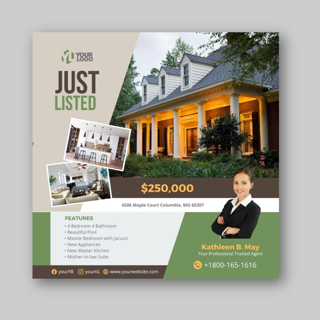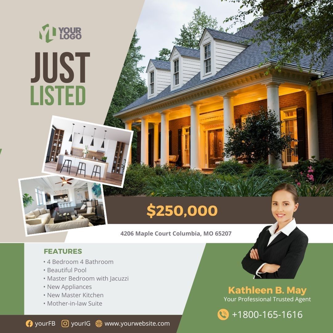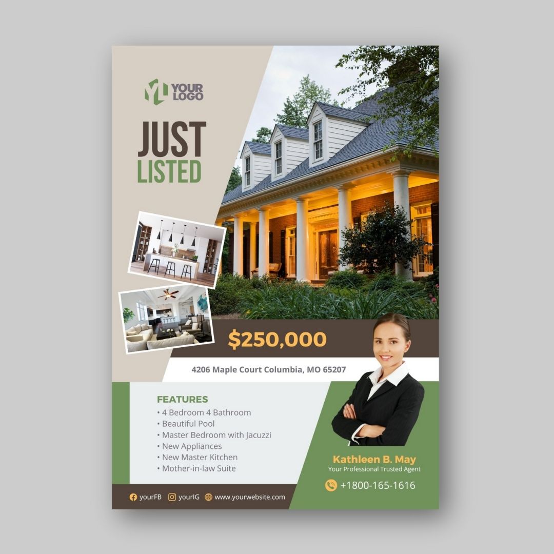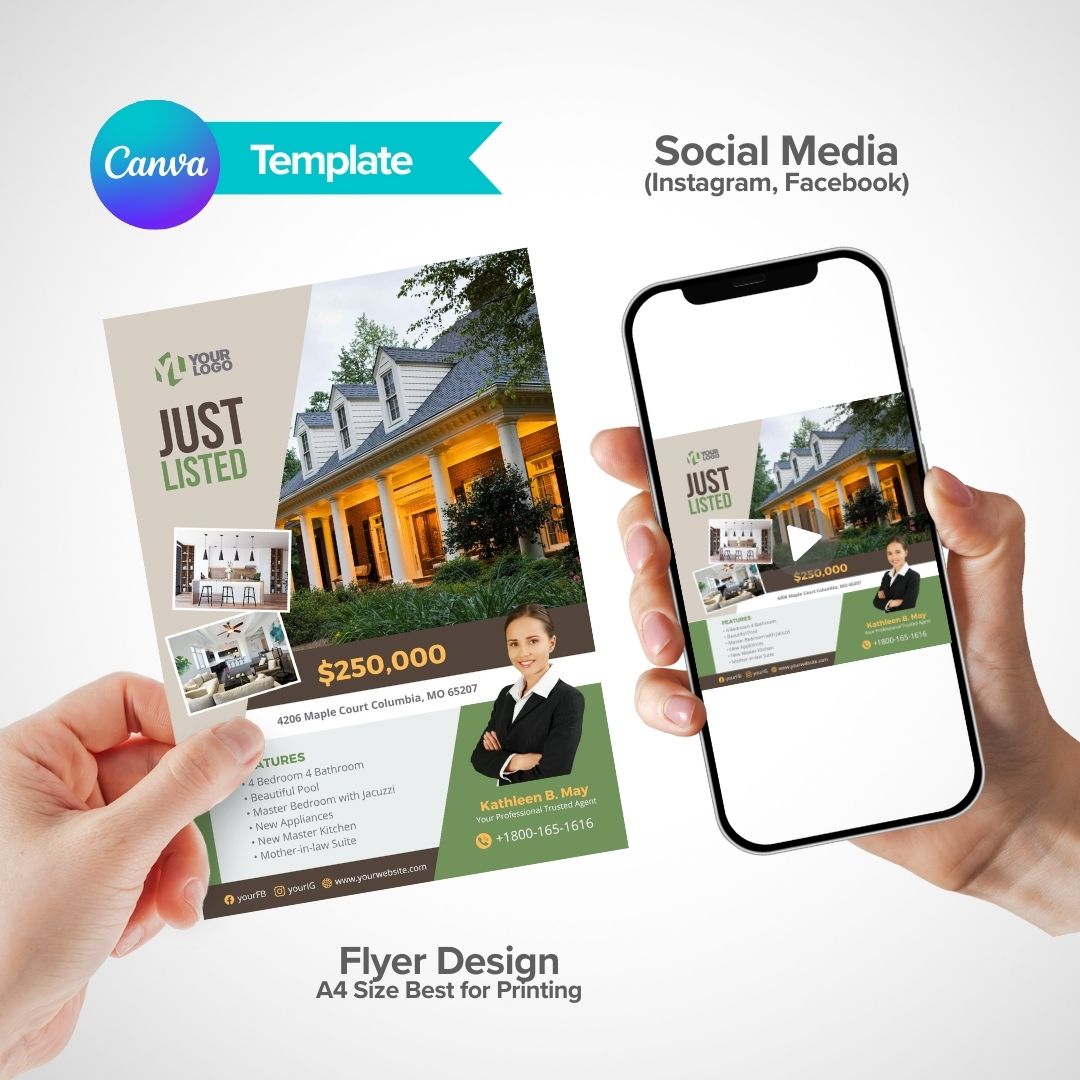 Just Listed Real Estate Flyer Template / Modern Property Listing Marketing Poster