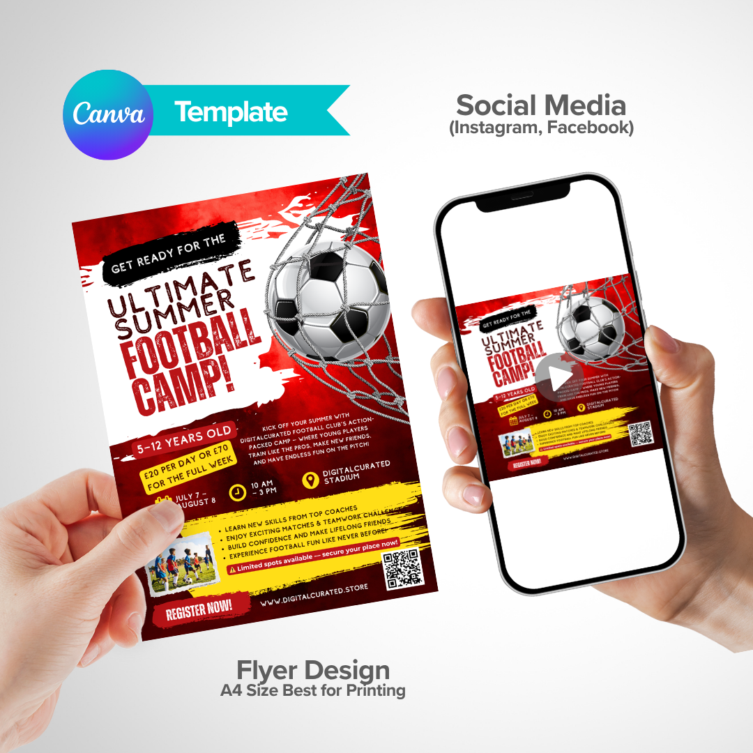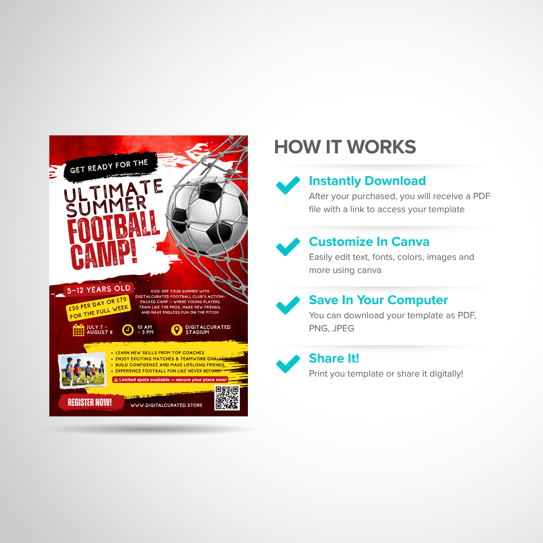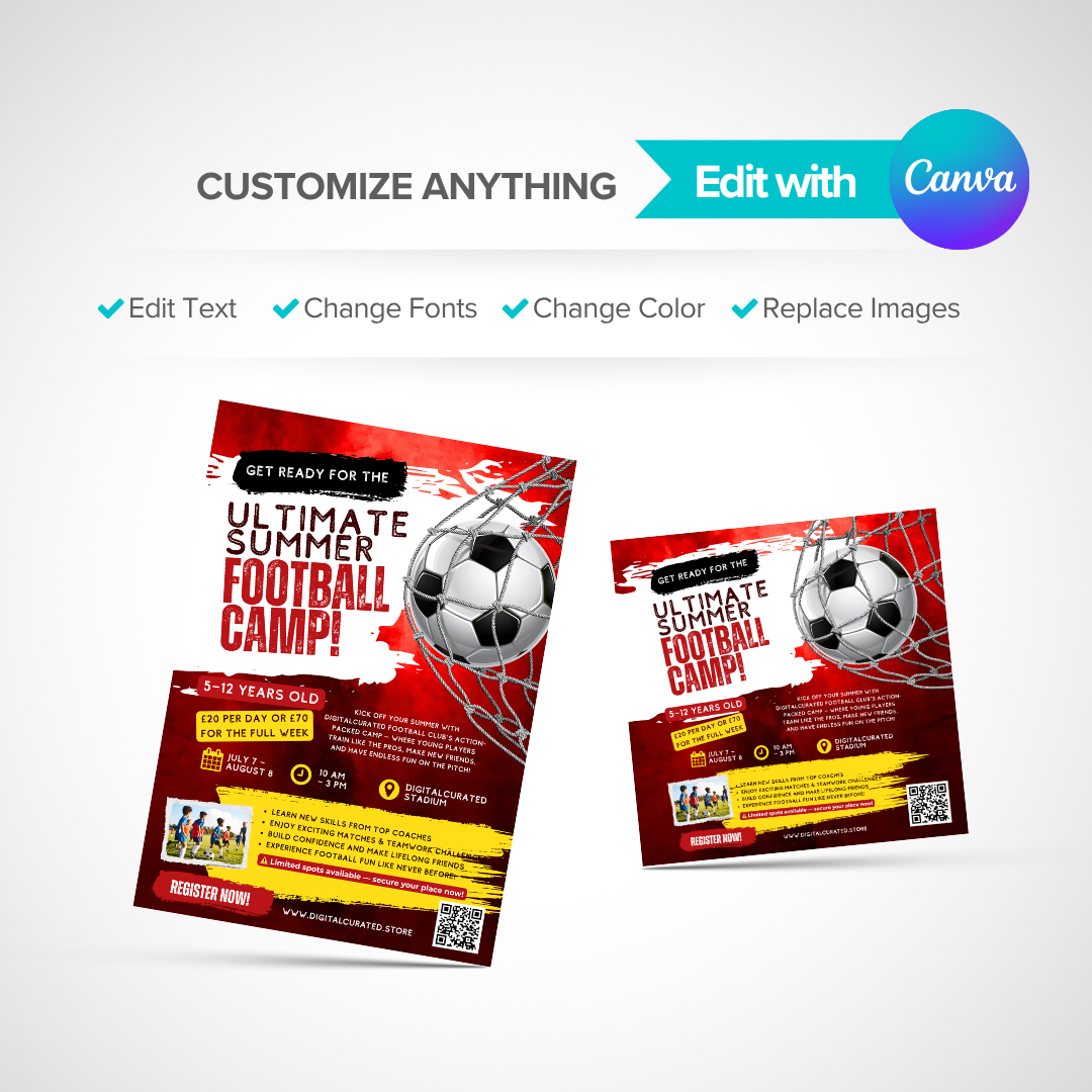 Ultimate Summer Football Camp Flyer Template / Soccer Training Canva Design