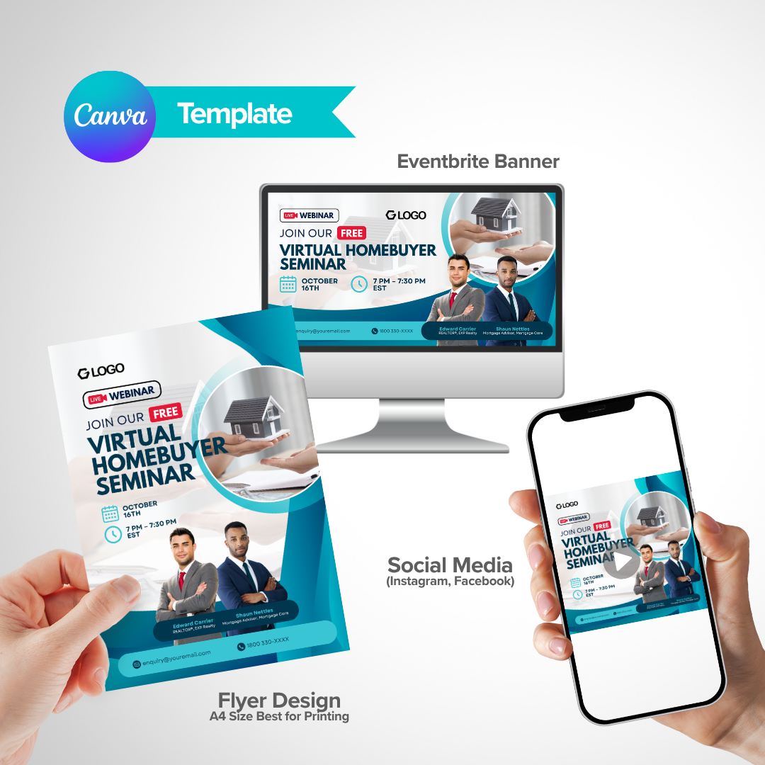 Virtual Homebuyer Seminar Flyer Template / Real Estate Webinar Canva Template
